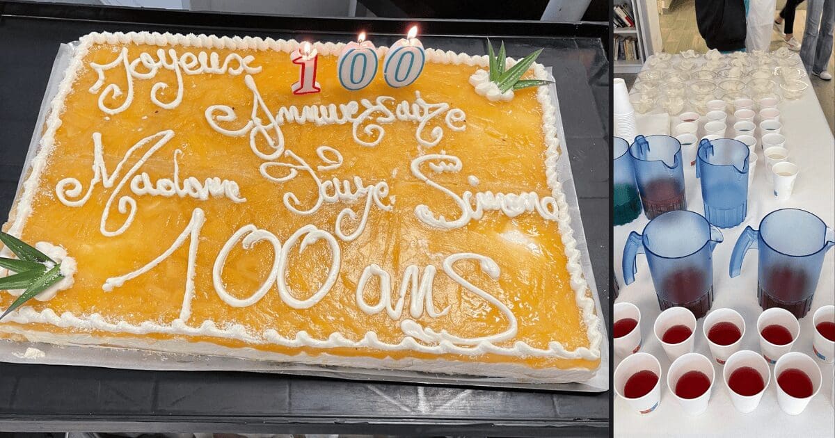 Pour la troisième fois, l’EHPAD célèbre les 100 ans d’une de ses résidentes ! Cette année, c’est Madame FAYE qui a l’honneur de fêter ce siècle de vie exceptionnel. À cette occasion, l’équipe de l’EHPAD a redoublé d’efforts en organisant un grand apéritif et en offrant un magnifique gâteau !