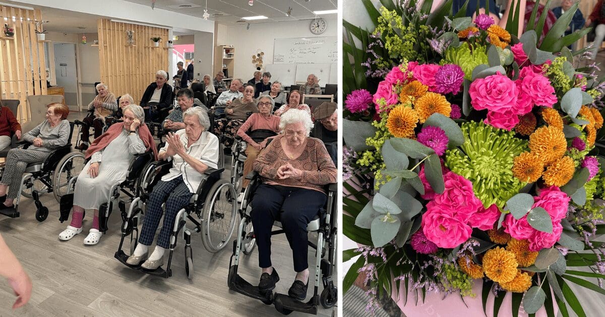 Après ce moment de convivialité, les résidents et l’équipe ont voulu témoigner leur affection à la grande dame du jour en lui offrant un somptueux bouquet de fleurs 💐.