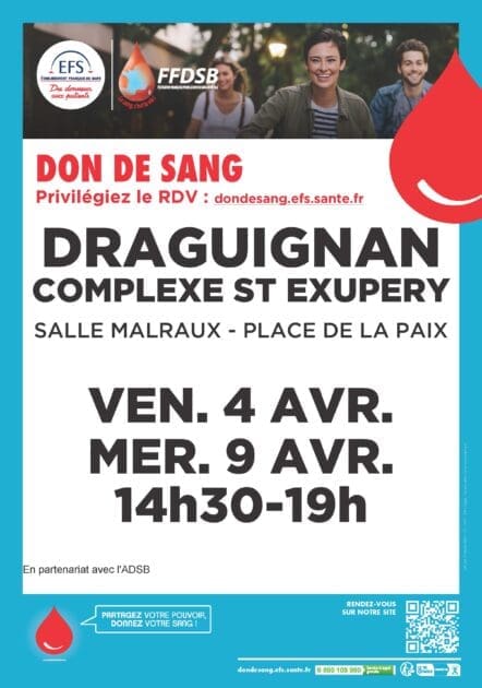 Prenez rendez-vous sur notre prochaine collecte qui a lieu à DRAGUIGNAN les 4 et 9 avril de 14h30 à 19h.