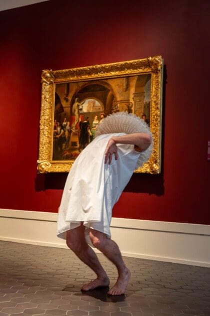 Dans un savant jeu de cache-cache avec les œuvres de la collection, Balkis Moutashar investit différents espaces du musée avec quatre solos autour du vêtement, du costume et de leur pouvoir de transformation du corps.