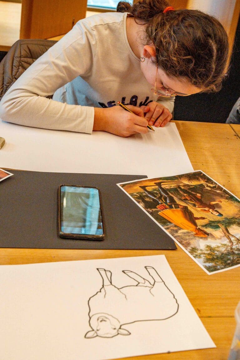 Après une visite autour de la jeunesse de Giotto, les participants se sont essayés au dessin à la façon du jeune maître ce 19 février au musée des Beaux-Arts.