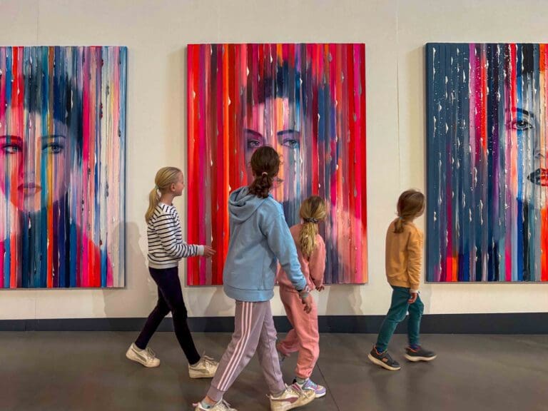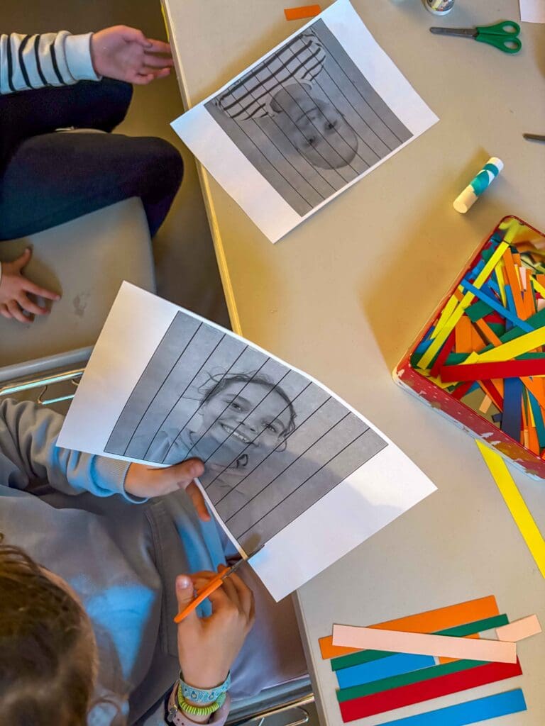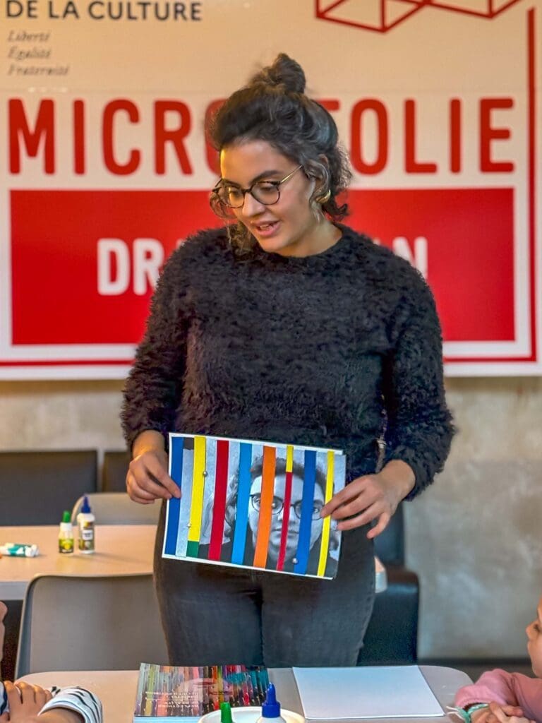 Cet atelier propose aux participants de s’inspirer des toiles exposées et de créer leur portrait filtré de rayures colorées.