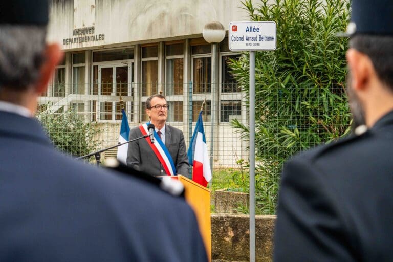 La cérémonie d’hommage aux victimes du terrorisme s’est déroulée ce 10 mars devant la plaque Arnaud Beltrame, avenue Alphonse Daudet, en présence des autorités civiles et militaires.