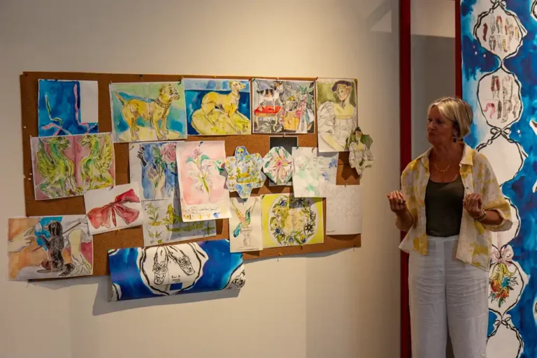 Dans le cadre de l’été culturel, opération nationale soutenant les propositions artistiques, Camille Chastang a installé son atelier au musée des Beaux-Arts en juillet et en août. Spécialisée dans le papier peint, elle s’est inspirée de celui orant le cabinet chinois pour proposer une création joyeuse et décalée.