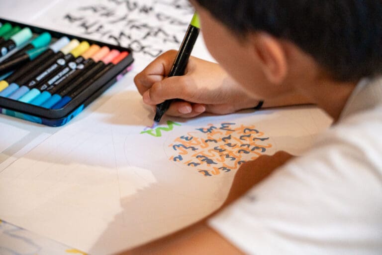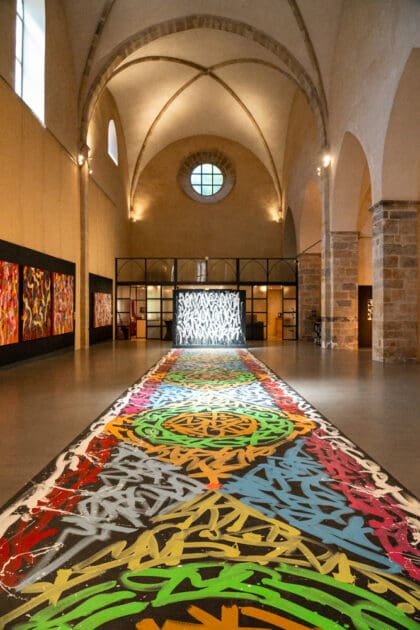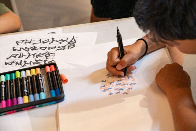 S’inspirant des œuvres de JonOne, présentées dans l’exposition Panorama, ils créent leur propre motif coloré. L’objectif : obtenir à la fin une œuvre commune, longue de plusieurs mètres.