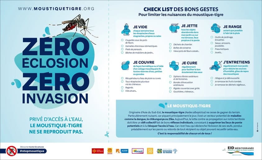 💪 Le moustique Tigre, vecteur de maladies comme la #dengue ou le #chikungunya est très présent. Respectez bien les bons gestes afin de vous prémunir de leurs piqûres !