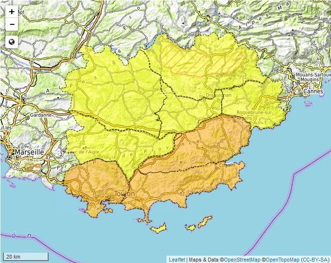 🟠3 massifs sont en risque 🔥SÉVÈRE : la Corniche des Maures, les Maures et les Monts Toulonnais