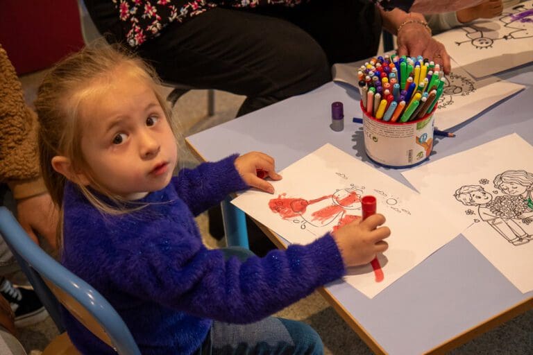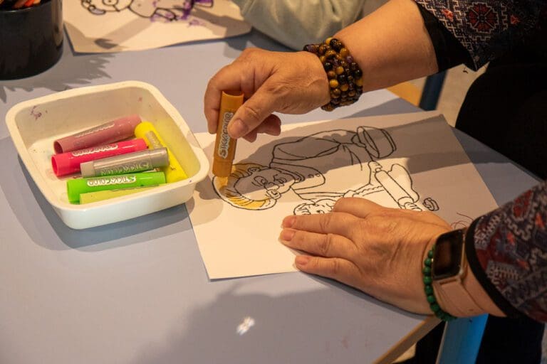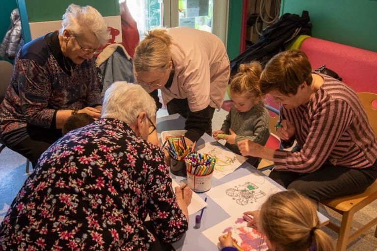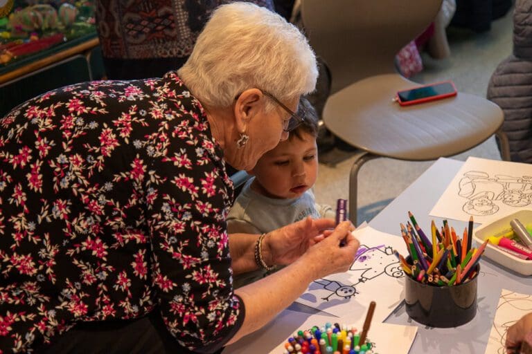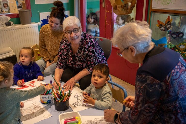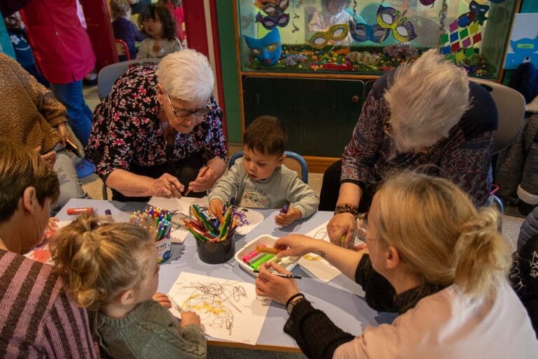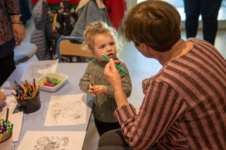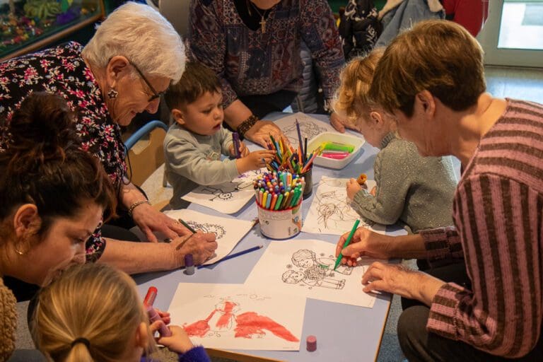 Cet atelier consiste à colorier, en duo senior-enfant, autour du thème de l’intergénérationnel, précédé d’une lecture d’un poème et d’une chanson sur le sujet.