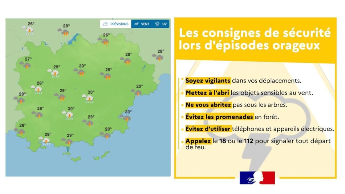 Ce dimanche 21 juillet, le département du #Var est placé en vigilance JAUNE pour orages à partir de 11h jusqu’en fin de journée , fin de la vigilance canicule et fin de la pollution à l’ozone.