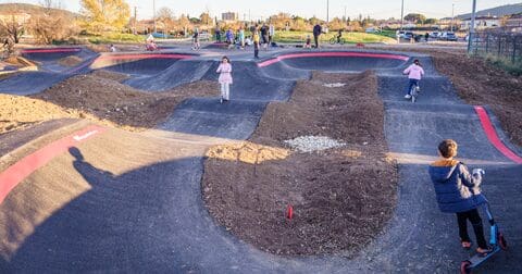 Les pistes de pumptrack (pistes en boucle, constituées de bosses et de virages relevés) ont été dessinées à partir des idées et propositions émises par les futurs usagers faisant du BMX, du VTT, du skate, du roller, de la trottinette… sur la base d’une esquisse réalisée par l’entreprise choisie pour les travaux. Il y a une piste pour les enfants et les débutants, ainsi qu’une piste pour les plus grands et pratiquants confirmés. Toutes deux ont été conçues pour accueillir des compétitions d’envergure régionale.