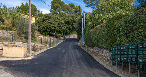 Au chemin des Salles, les nouveaux enrobés ont été posés sur 270 m linéaires, compris entre l’avenue de Montferrat et le chemin