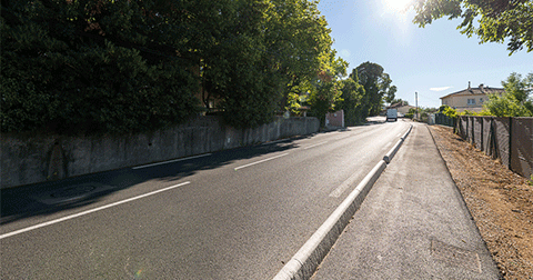 La voie a notamment été élargie au droit de l’intersection avec l’avenue du Pont d’Aups dans le but de faciliter l’accès aux véhicules de secours. L’occasion également de rénover les canalisations d’eau potable et d’eaux usées avant de renforcer la sécurité de la noue pluviale en place.