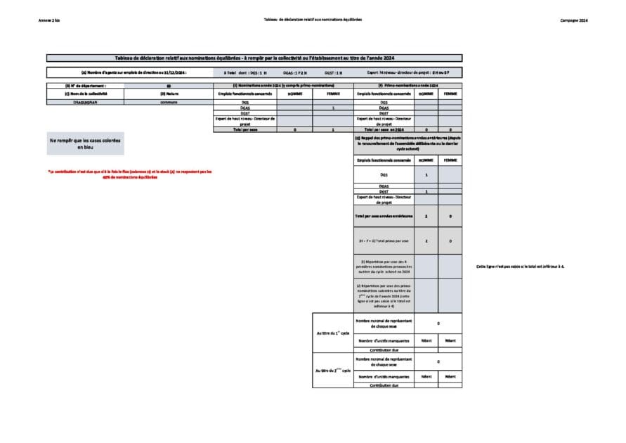 – Indicateur 1 calculable : si la collectivité rémunère en 2024 au moins 10 fonctionnaires femmes et 10 fonctionnaires hommes.