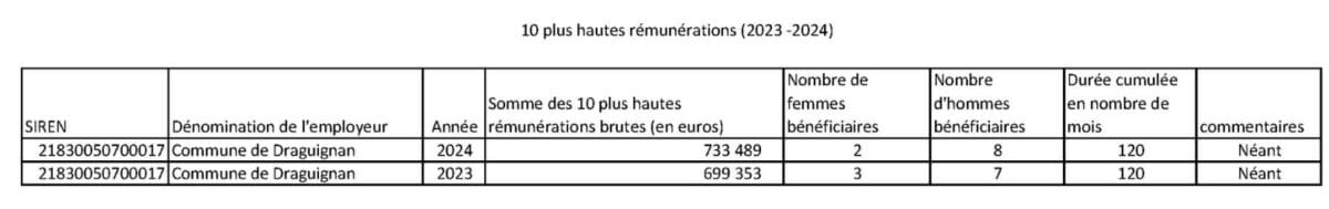 Dans le cadre de la transparence de l’action publique, les régions, les départements, les collectivités territoriales de plus de 40 000 habitants et les établissements publics de coopération intercommunale (EPCI) à fiscalité propre de plus de 40 000 habitants doivent publier chaque année la somme des dix rémunérations les plus élevées des agents relevant de leur périmètre également le nombre de femmes et d’hommes figurant parmi ces dix rémunérations les plus élevées (article L. 716-1 du code général de la fonction publique).
