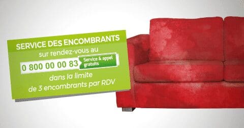 Le service des encombrants fonctionne sur rendez-vous au 0 800 00 00 83 dans la limite de 3 encombrants par personne.