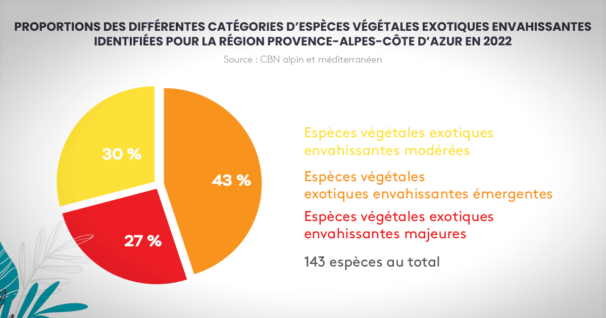 Notre région comporte 143 espèces considérées exotiques envahissantes, ce qui représente 3 % de la flore régionale.